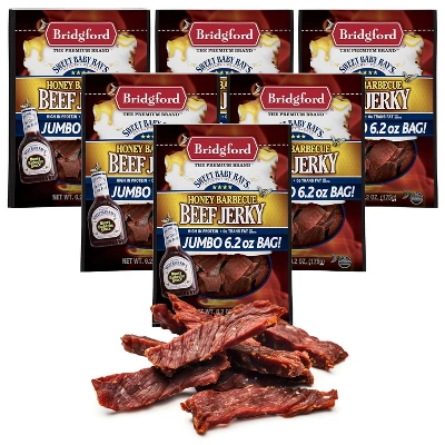 Bridgford Sweet Baby Ray’s Beef Jerky Honey BBQ 6.2 Oz – Ready To Eat High Protein Jerky For Midday Energy Boost Or A Post Workout Snack