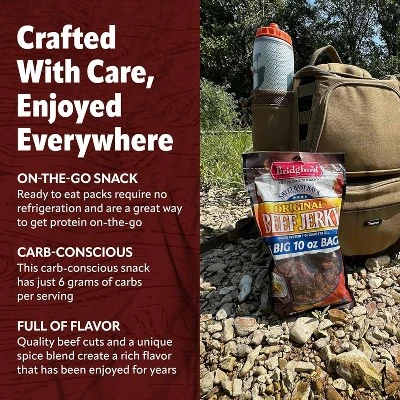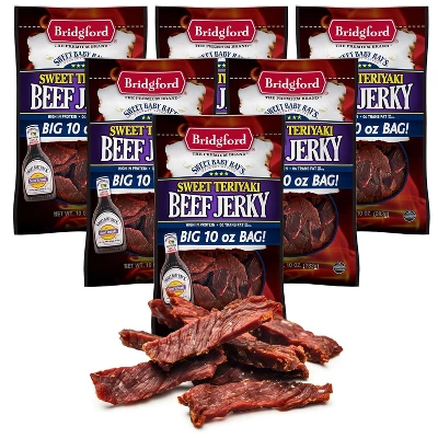 - Premium Ingredients: Our teriyaki beef jerky is made with premium beef and marinated in the signature teriyaki sauce. Enjoy the rich, savory taste of Bridgford’s finest cuts of beef, seasoned with our gourmet sauce, without compromising on quality.