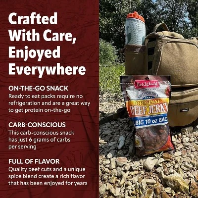 - Premium Ingredients: Our teriyaki beef jerky is made with premium beef and marinated in the signature teriyaki sauce. Enjoy the rich, savory taste of Bridgford’s finest cuts of beef, seasoned with our gourmet sauce, without compromising on quality.