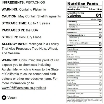 WARNING: Consuming this product can expose you to chemicals including Acrylamide which is known to the State of California to cause cancer and birth defects or other reproductive harm. For more information go to www.P65Warnings.ca.gov/food