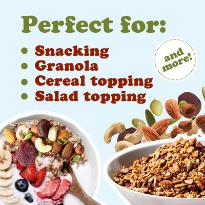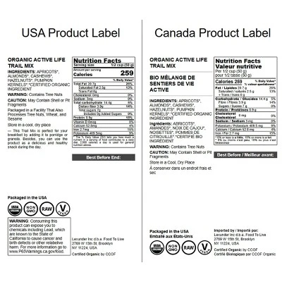 Furthermore, use Organic Active Life Nut Mix with dried Apricots when preparing homemade protein bars and energy bites with oatmeal, honey, and peanut butter. Apart from that, this Food to Live’s Blend is an excellent pastry ingredient that you can include in bread, muffin, cookies, or loaf cake recipes. Dried fruits and nuts have a pretty long shelf life if stored properly, so we encourage you to check our budget-friendly Organic Active Life Trail Mix bulk bags.Nutritional Value of Organic Active Life Trail MixTrail Mixes are a popular snack and a great part of a balanced diet due to their super rich nutritional profile. First of all, Almonds, Cashews, and Hazelnuts are loaded with good fats, dietary fiber, and plant protein which is especially important for people who follow an active lifestyle. Second, Organic Pumpkin Seeds are an outstanding source of antioxidants like phenolic acids and flavonoids as well as many essential minerals including Manganese, Copper, Magnesium, Zinc, and Phosphorus. Another ingredient of Organic Trail Mix blend is dried Apricots which are full of soluble fiber, Vitamins A, E, and C, Calcium, Iron, and carotenoids. This mix will be an amazing addition to Vegan and Paleo diets. Storage TipsStore Organic Active Life Trail Mix in a glass or plastic container that closes tightly and put it in a cool dry area away from direct sunlight.