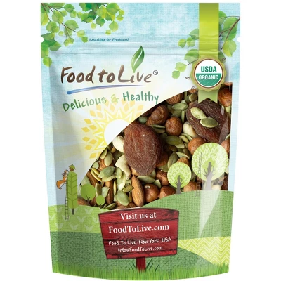 ✔️ORGANIC, NON-GMO, KOSHER AND VEGAN: This Active Life Trail Mix by Food to Live consists only of fresh Organic, Non-GMO, Kosher, and Vegan ingredients.✔️ENERGY BOOST FOR ACTIVE PEOPLE: This Organic Trail Mix is an excellent combination of Dried Apricots, Cashews, Almonds, Hazelnuts, and Pumpkin Seeds which provides a quick energy boost and a bunch of nutrients for those with an active lifestyle.✔️HIGHLY NUTRITIOUS, RICH IN PROTEIN: Our Organic Active Life Trail Mix is loaded with plant protein, dietary fiber, “good” fats, antioxidants, Vitamins C, E, A, Iron, Calcium, Manganese, Copper, Zinc, Phosphorus, and Magnesium.✔️GREAT SNACK & SPORTS BAR INGREDIENT: Snack on this Trail Mix right out of the bag before or after a workout or use it to make sports-nutrition bars and raw energy balls.✔️VERSATILE USES: Add Organic Active Life Trail Mix to your morning oatmeal, granola, cereals, smoothie bowls, use when making desserts or baking cakes, cookies, muffins, or breads. Whether you are hitting the trails, powering through a workout, or simply need a quick snack, Food to Live’s Organic Active Life Trail Mix is the perfect choice. It consists of Organic Dried Apricots, Organic Cashews, Organic Almonds, Organic Hazelnuts, and Organic Pumpkin Seeds – a combination of ingredients that will keep you full and energized for a while. It is surely a fantastic snack for active people. This Trail Mix is Organic, Non-GMO, Kosher, Raw, and Vegan.Versatile uses of Organic Active Life Trail MixThis Organic Trail Mix tastes absolutely delicious combining the chewy texture of apricots and crunchiness of nuts. Snack on this blend straight from the pack during a hike, road trip, or even on the go. It’s also a great Organic pre-workout Trail Mix that will boost your energy levels and stamina. Besides, you can add this mix to your oatmeal, cereals, granola and even a charcuterie board.
