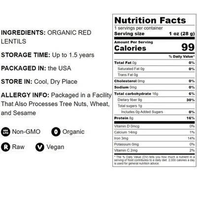 Organic Red Lentil Flour – By Food To Live