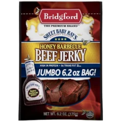 Bridgford Sweet Baby Ray’s Beef Jerky Honey BBQ 6.2 Oz – Ready To Eat High Protein Jerky For Midday Energy Boost Or A Post Workout Snack