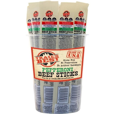 - Includes 32 sticks total of Trail’s Best 1.1oz Beef Pepperoni Sticks